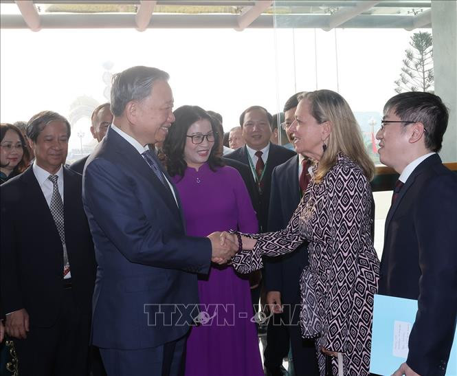 | Tổng Bí thư, Chủ tịch nước Tô Lâm dự Lễ khánh thành “Dự án tăng cường năng lực đào tạo, khoa học công nghệ” từ nguồn vốn ODA của Ngân hàng Thế giới. Ảnh: VOV |