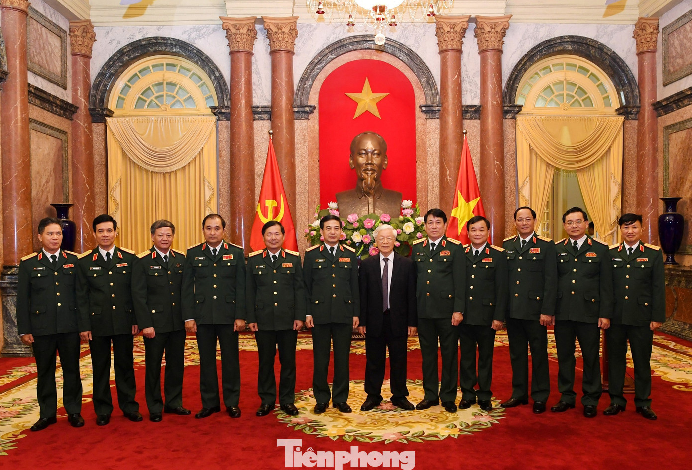 Tại buổi lễ, Tổng Bí thư, Chủ tịch nước Nguyễn Phú Trọng đã trao Quyết định thăng Quân hàm từ Trung tướng lên Thượng tướng và tặng hoa chúc mừng hai đồng chí Hoàng Xuân Chiến và Lê Huy Vịnh.