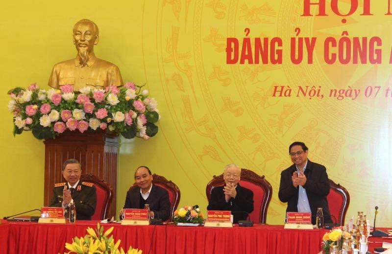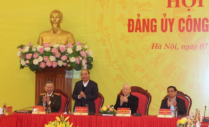 | Tổng Bí thư Nguyễn Phú Trọng, Chủ tịch nước Nguyễn Xuân Phúc, Thủ tướng Chính phủ Phạm Minh Chính với các đại biểu tham dự hội nghị. |