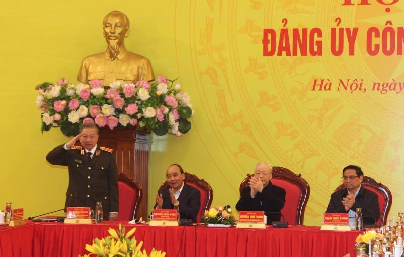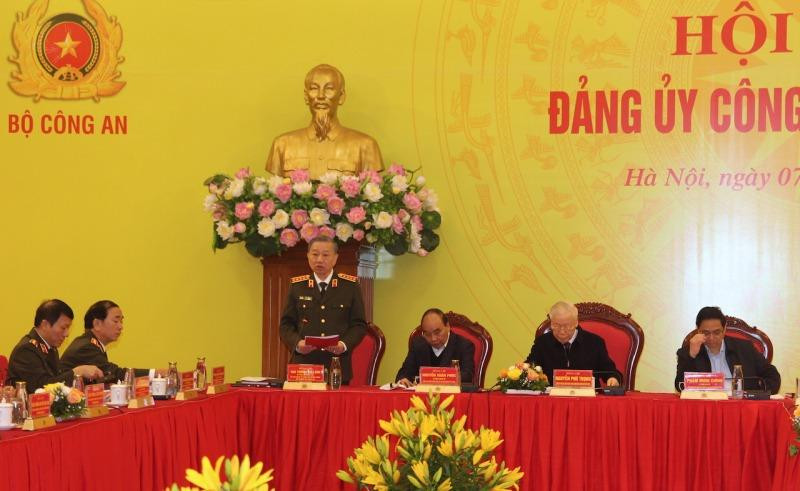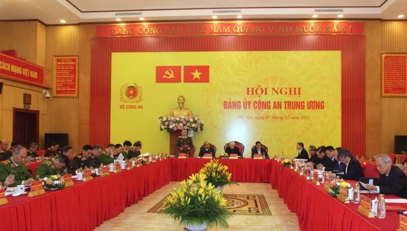 Phát biểu khai mạc hội nghị, Bộ trưởng Tô Lâm nêu rõ, thực hiện quy chế làm việc và chương trình công tác năm 2022, Đảng uỷ Công an Trung ương tổ chức hội nghị này để cho ý kiến đối với Báo cáo tổng kết công tác đảng của Đảng bộ Công an Trung ương năm 2022 và phương hướng, nhiệm vụ năm 2023; về các nội dung chính của Hội nghị Công an toàn quốc lần thứ 78; Báo cáo kết quả bước đầu triển khai thực hiện Nghị quyết số 12 của Bộ Chính trị và Kế hoạch số 118 của Đảng uỷ Công an Trung ương về đẩy mạnh xây dựng lực lượng CAND thật sự trong sạch, vững mạnh, chính quy, tinh nhuệ, hiện đại, đáp ứng yêu cầu, nhiệm vụ trong tình hình mới và một số nội dung khác.