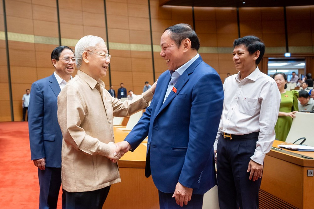| Tổng Bí thư Nguyễn Phú Trọng, Thủ tướng Phạm Minh Chính với Bộ trưởng Nguyễn Văn Hùng. Ảnh: Trần Huấn |