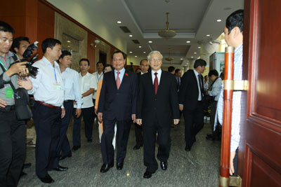 “Tôi đề nghị đại hội tập trung thảo luận kỹ, phân tích thật sâu sắc nguyên nhân, xác định rõ trách nhiệm để có giải pháp khắc phục hiệu quả… Xây dựng TPHCM trở thành thành phố văn minh, hiện đại, nghĩa tình, giữ vai trò đầu tàu về kinh tế xã hội, sớm trở thành một trong những trung tâm lớn về kinh tế, tài chính, thương mại, khoa học công nghệ của khu vực là nhiệm vụ nặng nề nhưng cũng rất vẻ vang của Đảng bộ và nhân dân TPHCM” – Tổng Bí thư nhấn mạnh.
