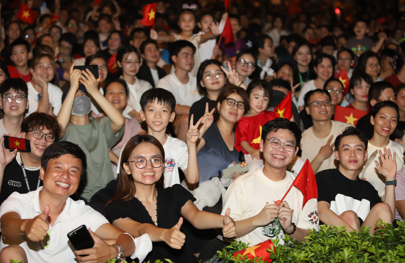 | Đông đảo khán giả đón xem chương trình tại không gian phía trước Hội trường Thống Nhất. Ảnh: Ngô Tùng |