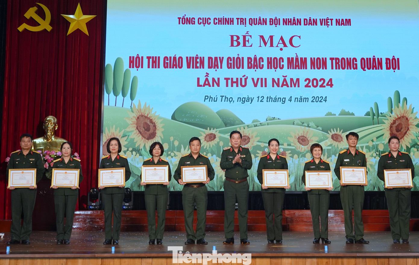 | Lãnh đạo Tổng cục Chính trị Quân đội nhân dân Việt Nam và đại diện lãnh đạo Bộ Giáo dục và Đào tạo, trao Bằng khen tặng cô giáo Hà Thị Khánh Hoà (Trường Mầm non Hoa Hồng, Nhà máy Z121, Tổng cục Công nghiệp quốc phòng) đoạt giải Xuất sắc tại hội thi. |