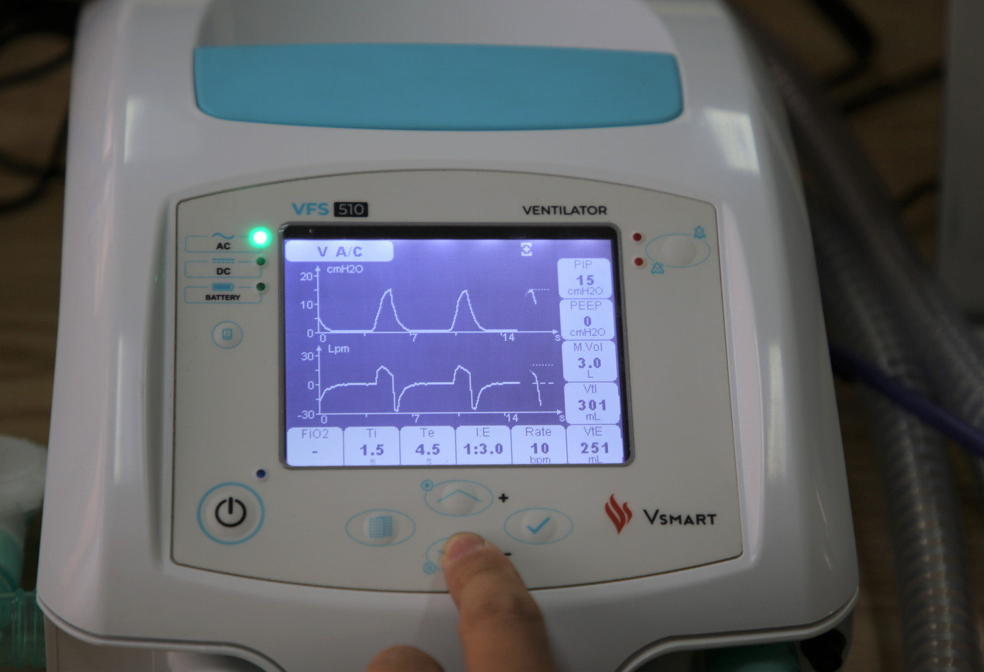 Vì tình trạng khan hiếm vật tư sản xuất máy thở trên toàn thế giới, Vingroup chủ động nghiên cứu khắc phục để tự sản xuất hoặc nội địa hóa tới 70% các cụm linh kiện trong máy, bao gồm cả các cụm linh kiện đặc biệt quan trọng và phức tạp như: quạt thổi khí (blower), các bo mạch (PCBA điều khiển, nguồn,…), bàn phím, màn hình hiển thị, pin, vỏ máy...