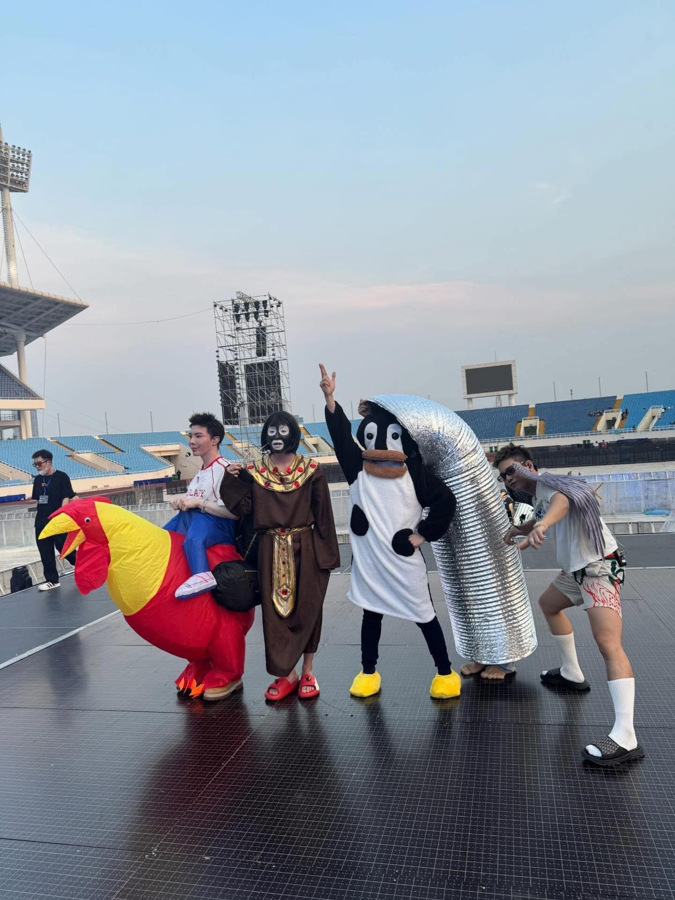 | Đội phó SayFive Đức Phúc khiến fan "toát mồ hôi" khi diện bộ đồ bông chim cánh cụt bất chấp thời tiết nắng nóng. Một bạn khán giả thích thú: "Đúng là thời trang phang thời tiết!" |