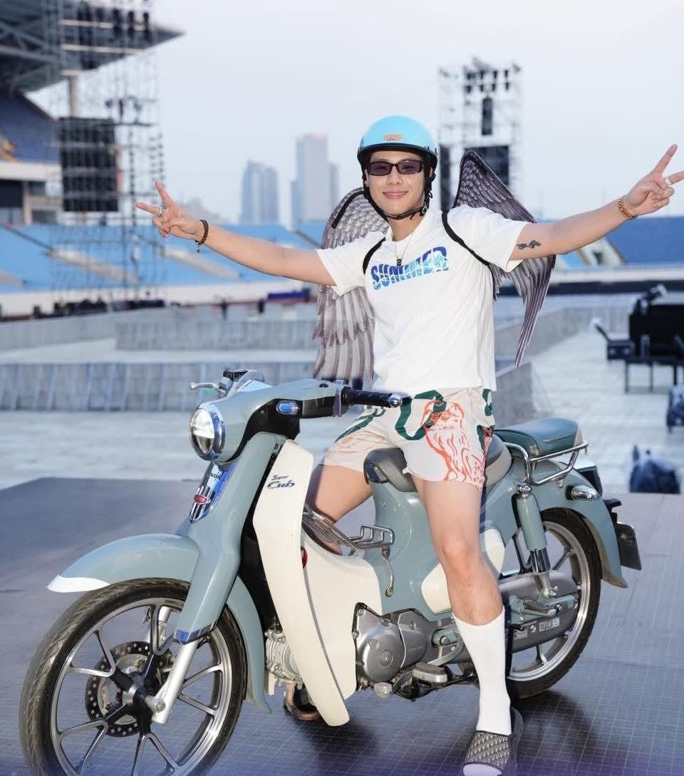 ERIK diện bộ trang phục thùng thình với sắc trắng xanh khiến fan cười nghiêng ngả. Dẫu vậy, netizen cũng nhanh chóng "bắt bài", cho rằng ERIK đang cố tình sử dụng trang phục rộng để... che bụng sữa.