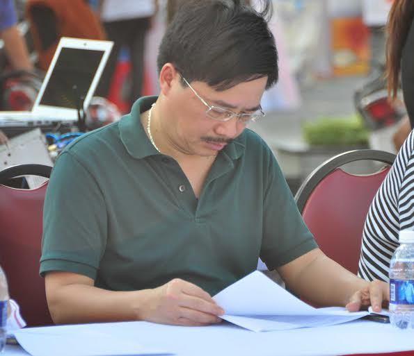 Nhà báo Vũ Tiến, Phó Tổng biên tập báo Tiền Phong, Phó Ban tổ chức đang kiểm tra kịch bản chương trình.