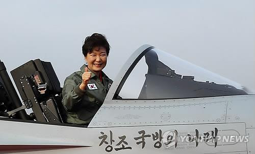 Tổng thống Park đã có bài phát biểu ngắn tại buổi lễ, ấn nút xuất kích máy bay chiến đấu FA-50 và chứng kiến 2 trong số các máy bay trình diễn các khả năng hoạt động.