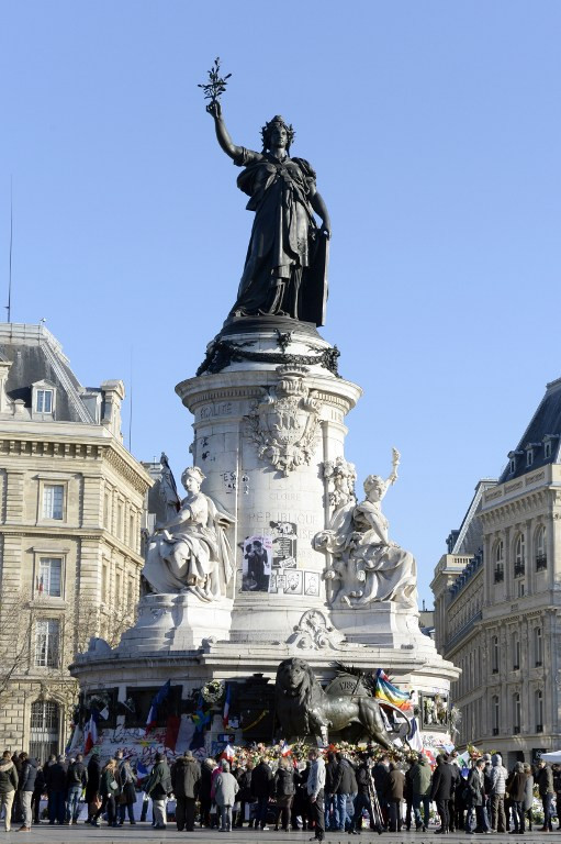 Người dân tụ tập tại Quàng trường Cộng hòa ở Paris để tưởng niệm nạn nhân khủng bố