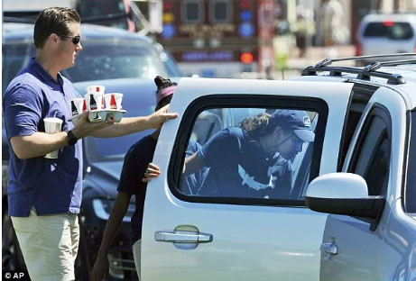 Sau khi kết thúc ca làm việc của mình, Sasha và một người bạn, cũng là nhân viên phục vụ ở quán, bưng một khay đồ uống ra cho các nhân viên mật vụ rồi lên xe rời đi.