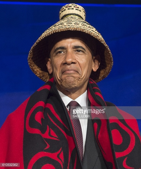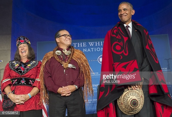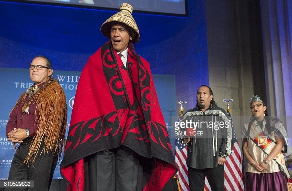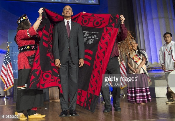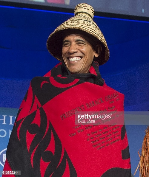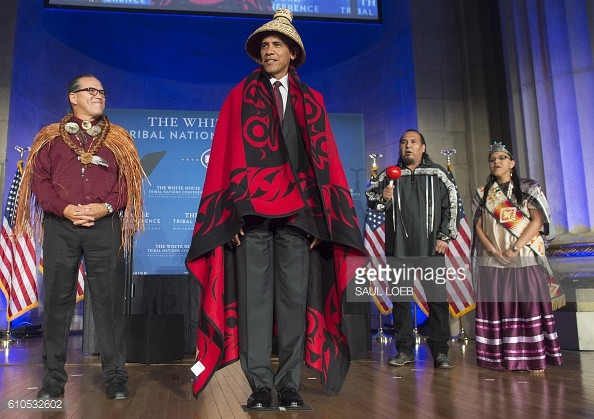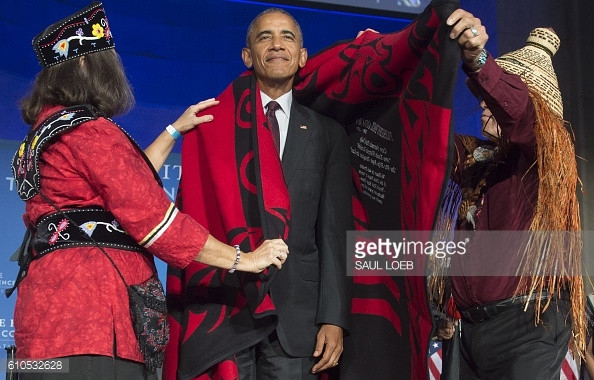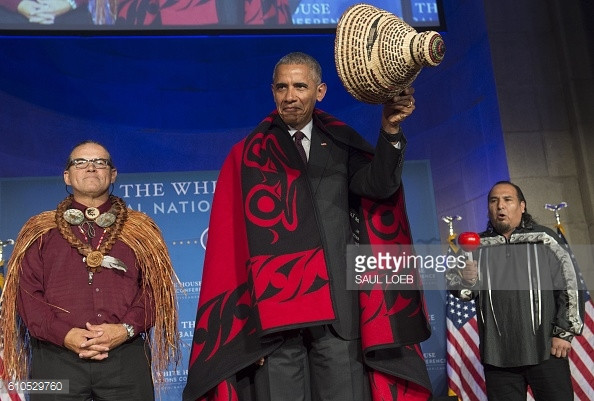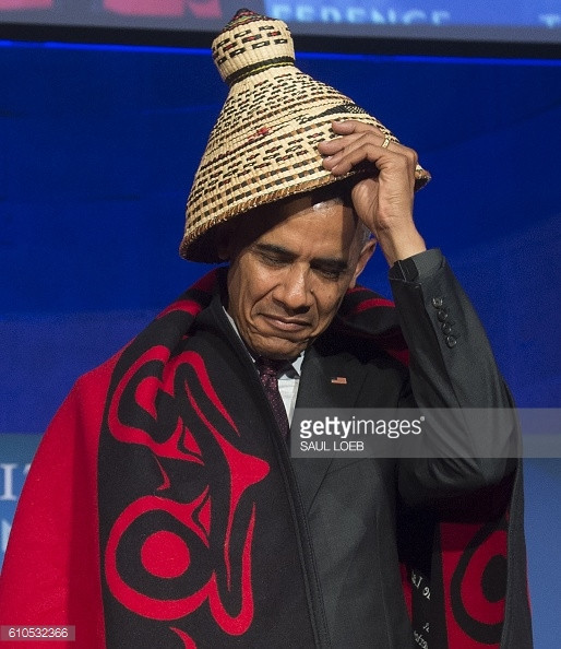 Tại hội nghị, thủ lĩnh bộ tộc Crow đã bày tỏ tình cảm với ông Obama bằng cách quấn chiếc chăn truyền thống quanh người Tổng thống và đội lên đầu ông một chiếc mũ đan độc đáo.