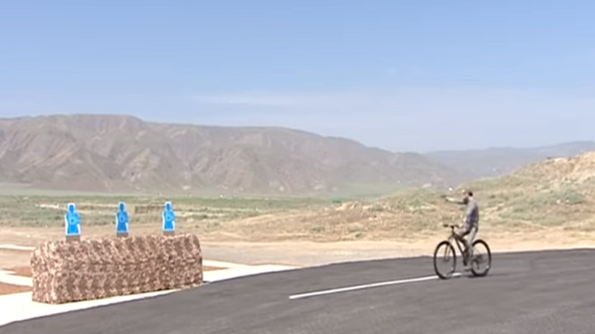 Trước đó, hồi năm 2019, Tổng thống Turkmenistan từng gây “sốt” khi trổ tài vừa đạp xe vừa bắn súng điêu luyện.