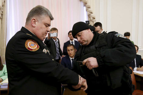 Ngày 25/3, các nhân viên an ninh thuộc Bộ Nội vụ Ukraine đã bất ngờ ập vào phòng họp chính phủ bắt giữ 2 lãnh đạo cao nhất của Cơ quan Các tình trạng khẩn cấp quốc gia Ukraine ngay trước sự chứng kiến của báo giới với các cáo buộc tham nhũng.