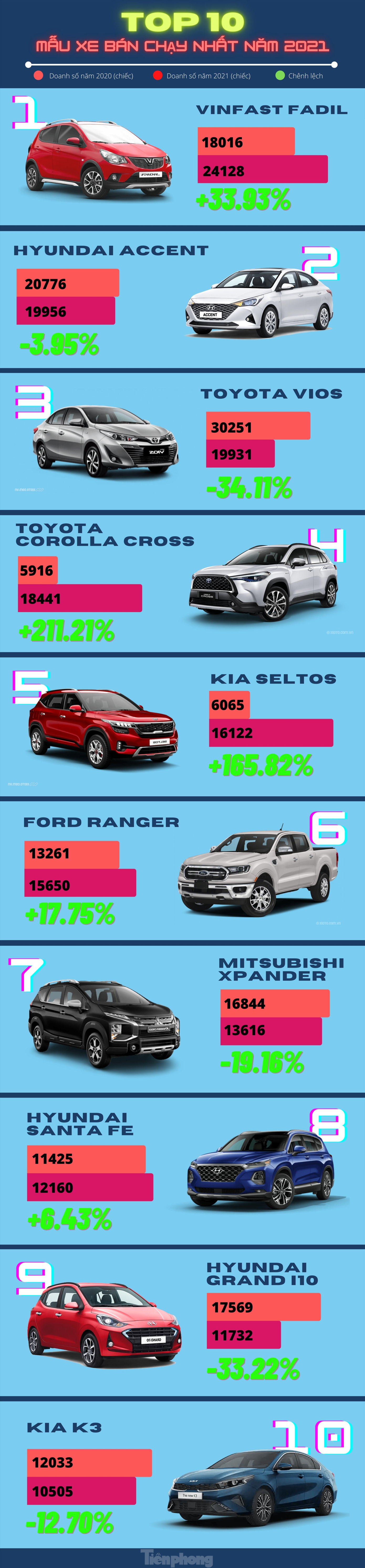 Top 10 ô tô bán chạy nhất năm 2021 tại Việt Nam