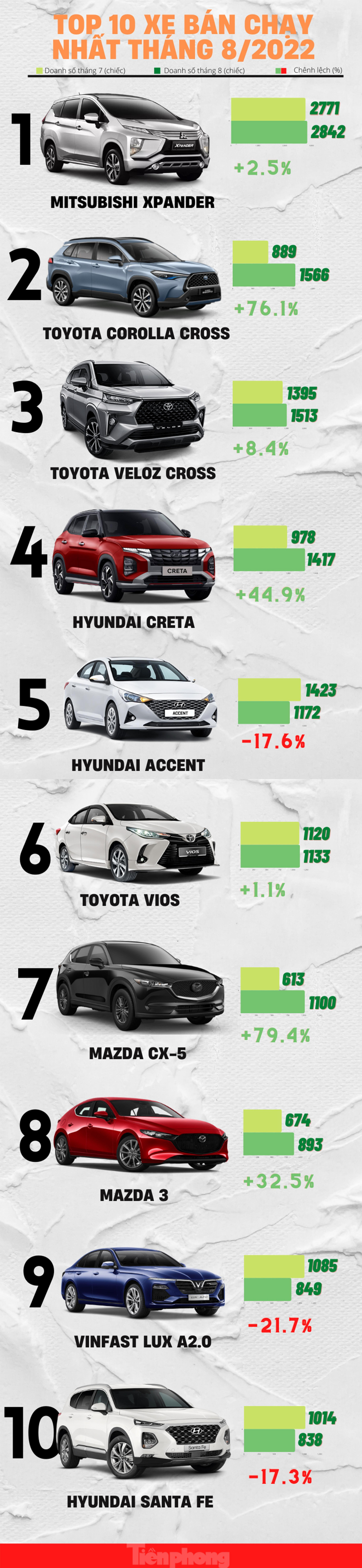 Google News Top 10 ô tô bán chạy nhất tháng 8 tại Việt Nam