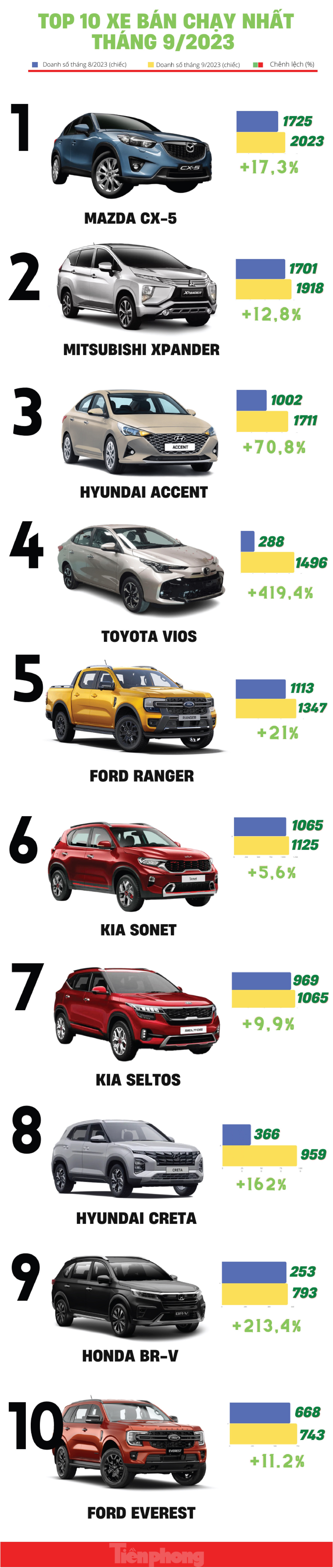 Google News Top 10 ô tô bán chạy nhất tháng 9 tại Việt Nam
