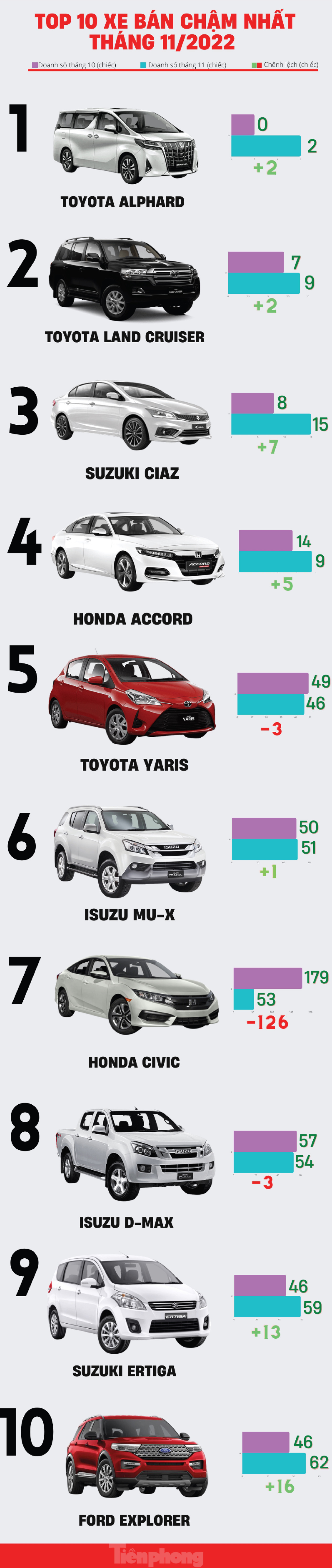 TPO - Danh sách xe doanh số thấp tháng 11/2022 vẫn chứng kiến những "gương mặt" quen thuộc. Đặc biệt, sedan Honda Civc là mẫu xe giảm doanh số mạnh nhất khi so với tháng 10.