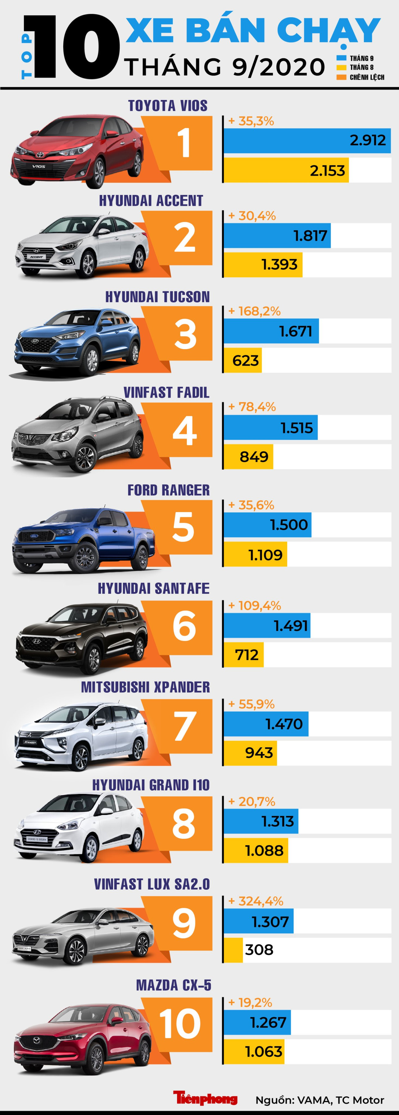 Top 10 ôtô hút khách nhất tháng 9 ở Việt Nam