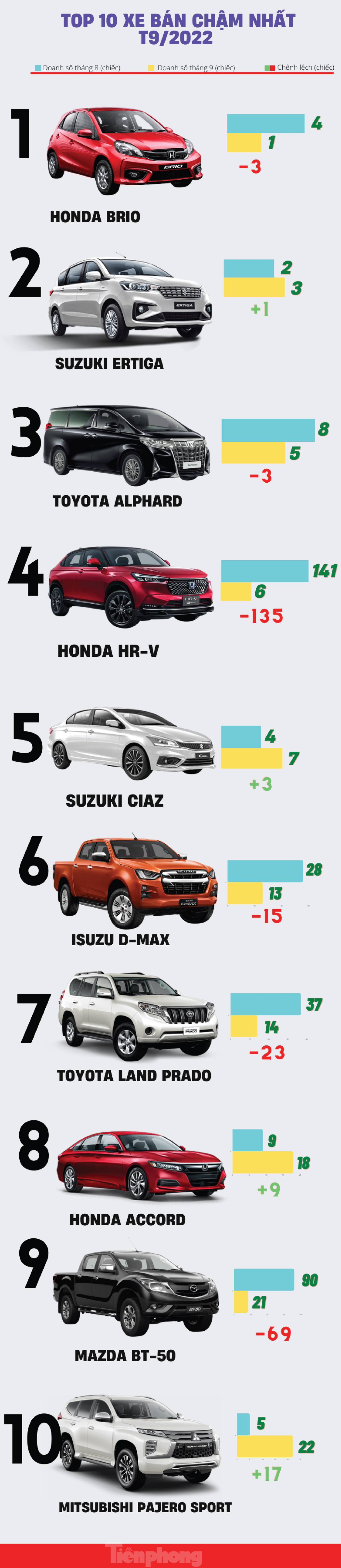 TPO - Bất chấp nguồn cung đang trên đà hồi phục, những cái tên quen thuộc vẫn xuất hiện trong danh sách xe hơi có doanh số bán chậm nhất. Đặc biệt, Honda HR-V chứng kiến sự sụt giảm mạnh mẽ với 135 chiếc.