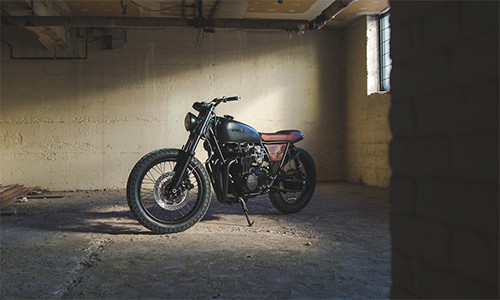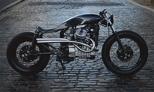 Mang triết lý thiết kế dòng chảy, bản độ của hãng độ Auto Fabrica có tên gọi Type 8. Các tay thợ người Anh tinh chỉnh lại bộ khung CX500 sao cho tối giản nhất. Bình xăng nối liền yên gò thủ công. Yên đơn đặc trưng cafe racer, ống xả thiết kế lại bằng thép không gỉ.