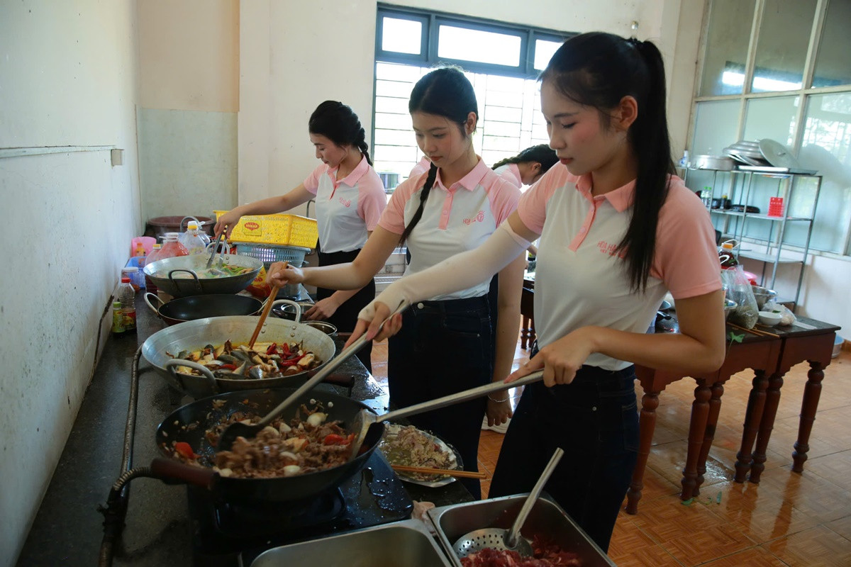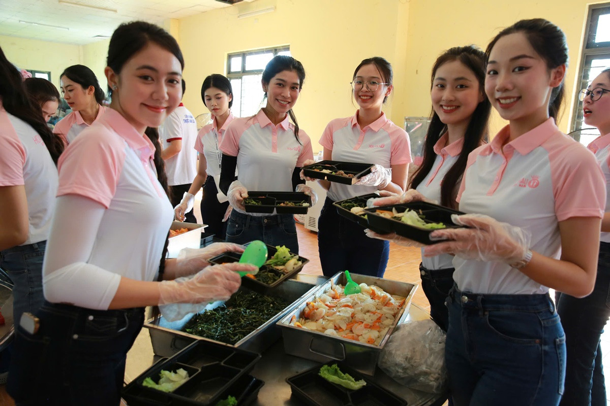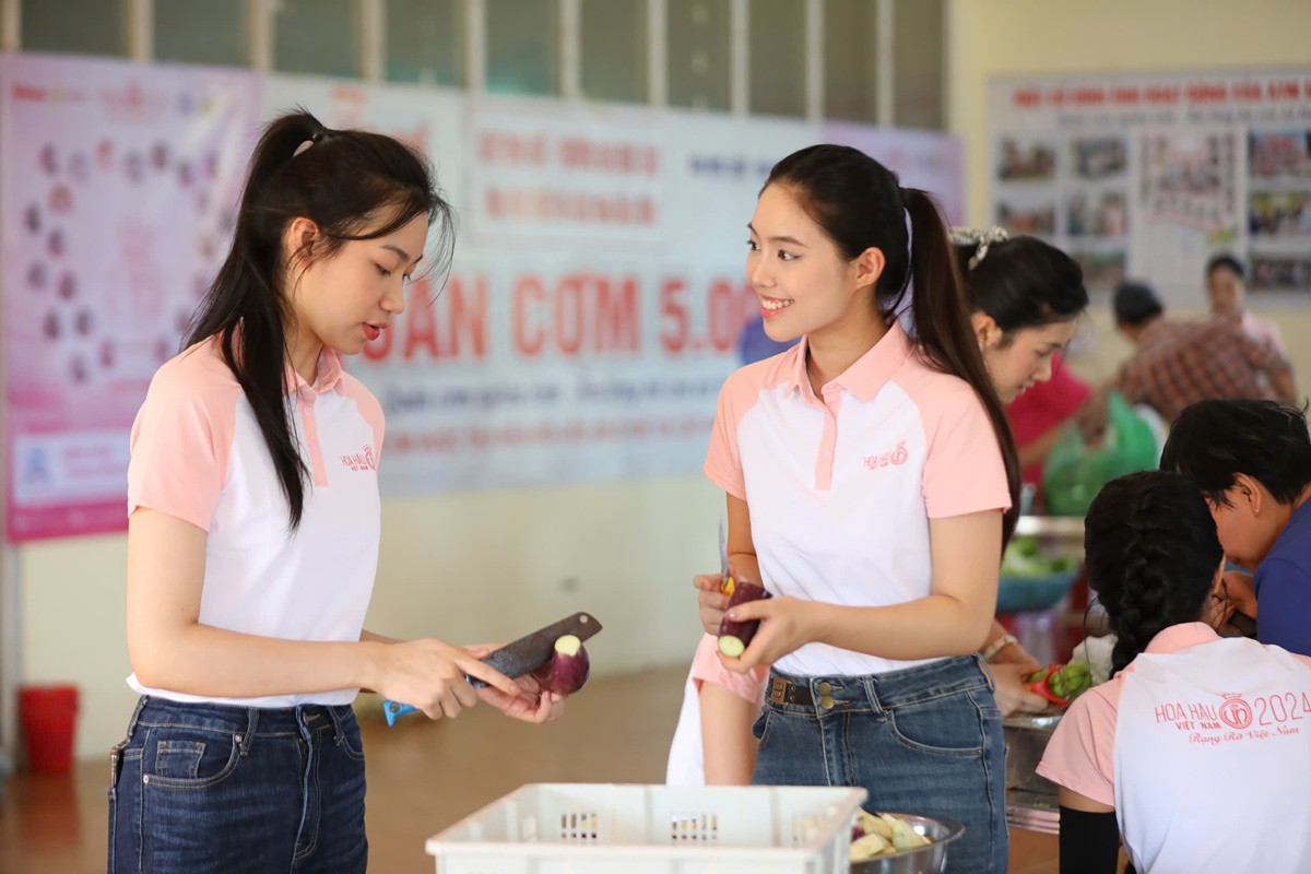 Ngay sau khi đặt chân tới TP Huế, thí sinh Hoa hậu Việt Nam 2024 đã tham gia buổi nấu cơm từ thiện gửi đến bệnh nhân ở Bệnh viện Trung ương Huế. 25 cô gái cùng vào bếp, nấu 300 phần cơm, góp phần lan tỏa tấm lòng đùm bọc, san sẻ với những người bệnh có hoàn cảnh khó khăn. Hoạt động nằm trong dự án nhân ái Trao Yêu Thương - Nhận Nụ Cười của cuộc thi Hoa hậu Việt Nam 2024.