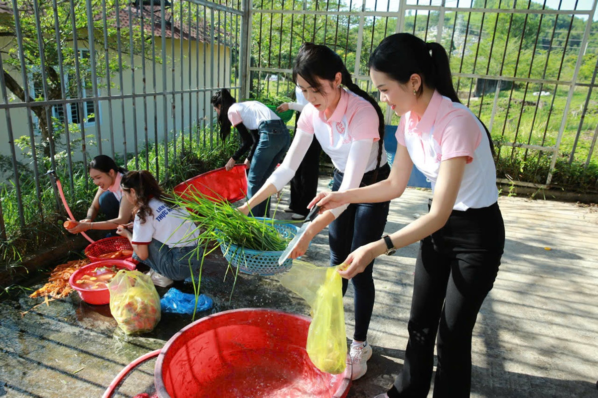 Từ 6 giờ sáng, các cô gái đã có mặt tại nhà bếp của quán cơm từ thiện Quán Cơm 5.000 để chuẩn bị thực phẩm, sẵn sàng cho công việc nấu nướng. Nhiều cô gái vốn yêu thích nấu ăn nên rất hào hứng với công việc lần này.