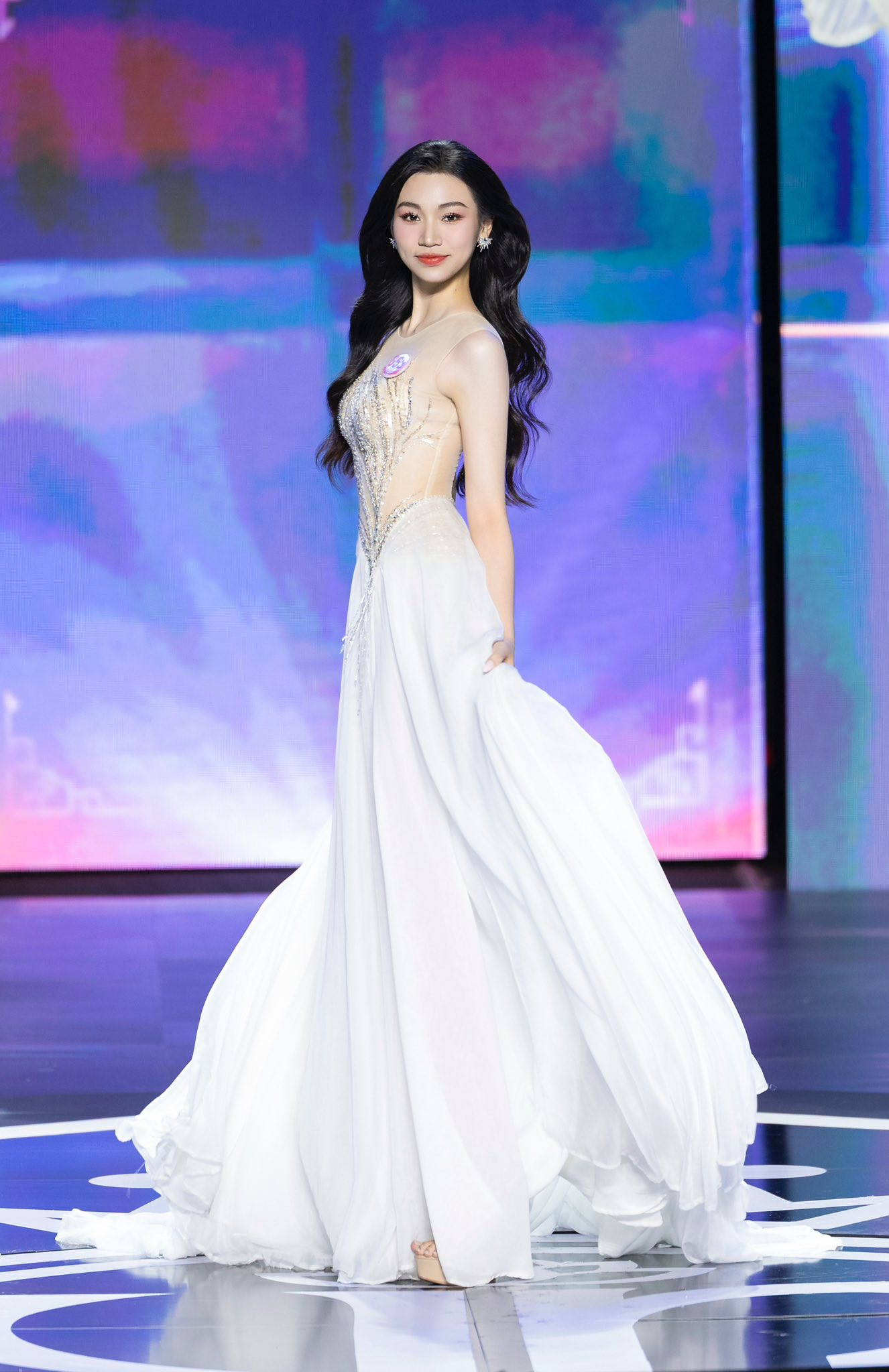 Trong những màn trình diễn của mình, Hiền Nhi đã biết cách khoe khéo đôi chân dài miên man cùng góc cạnh khuôn mặt đậm chất Á Đông. Tận dụng lợi thế chiều cao ấn tượng, cô còn chọn trang phục hợp dáng, giúp ghi điểm trong nhiều bức ảnh chụp chung giữa dàn thí sinh rạng rỡ của Hoa hậu Việt Nam 2024.