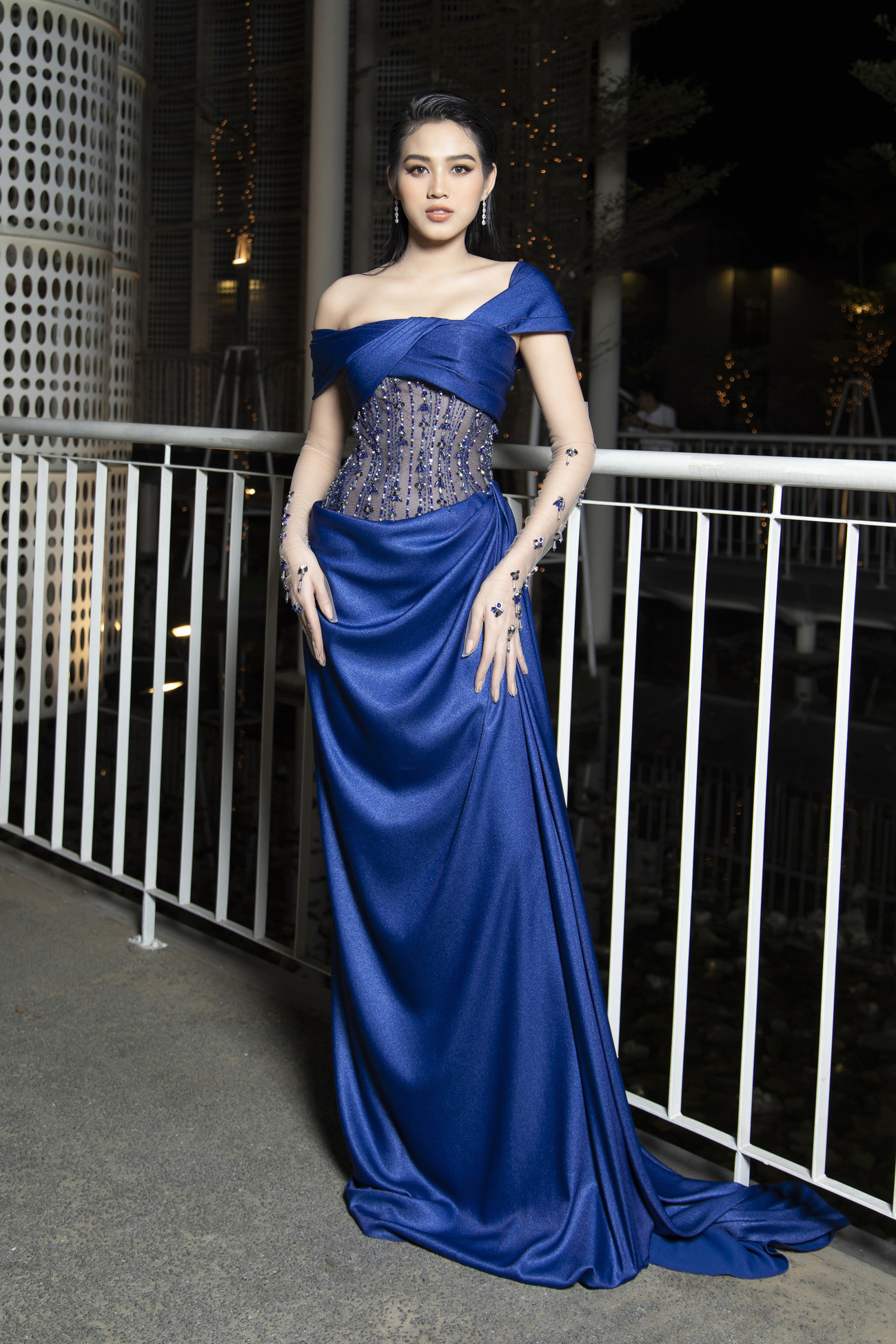 Bộ đầm lệch vai với những chi tiết đính kết cầu kỳ dọc theo phần eo cực kỳ gợi cảm và nóng bỏng.