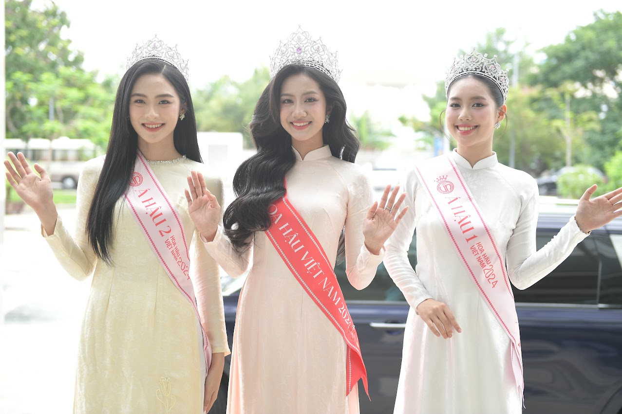 Top 3 Hoa hậu Việt Nam 2024 mặc áo dài nền nã, thanh lịch.