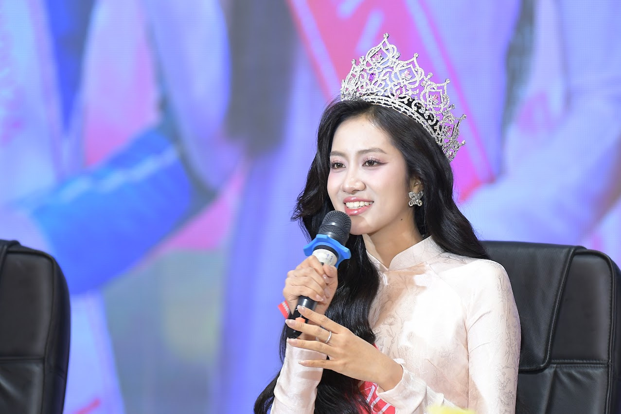 | Buổi giao lưu giữa Ban Tổ chức cuộc thi Hoa hậu Việt Nam và Top 3 Hoa hậu Việt Nam 2024 đã diễn ra trong không khí thân mật, với sự tham gia của đông đảo sinh viên và báo giới. |