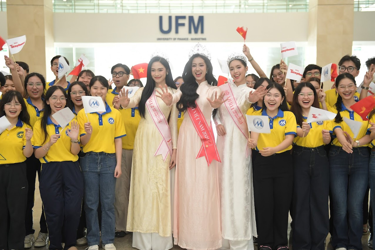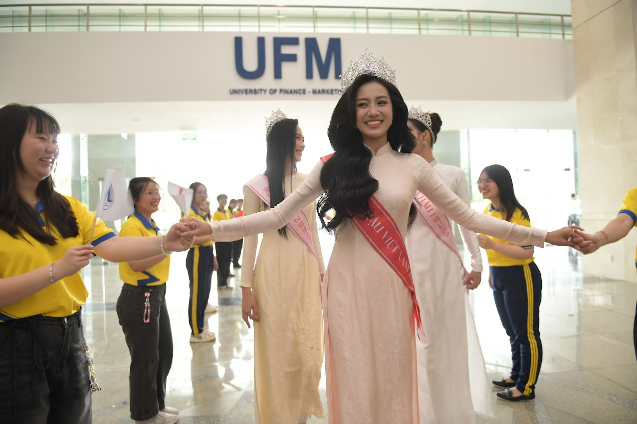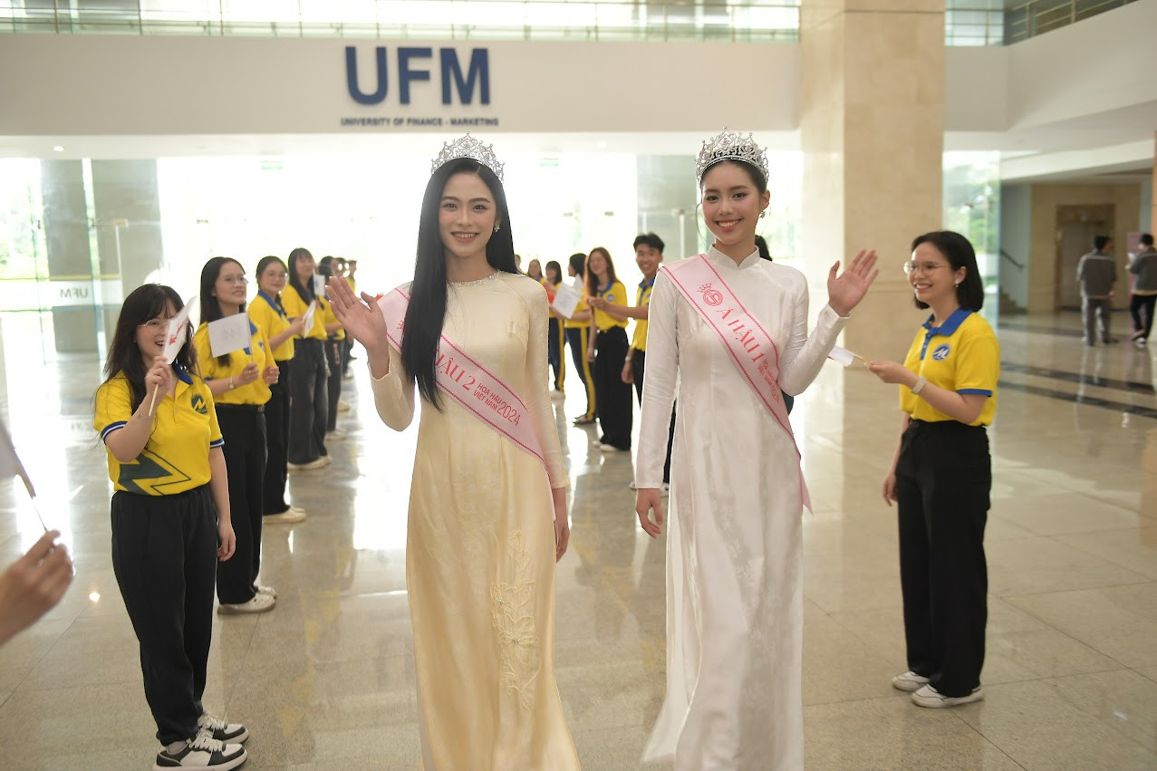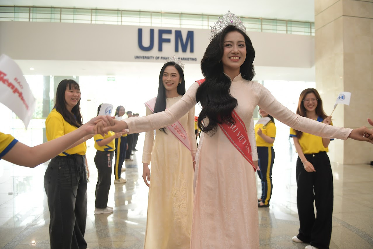 Chia sẻ trước hàng nghìn sinh viên, Á hậu 1 Trần Ngọc Châu Anh cho biết cô ấn tượng với không khí trẻ trung, năng động và sự chào đón nồng nhiệt của giảng viên, sinh viên UFM: “Tôi cảm nhận được nguồn năng lượng rất tích cực. Dù đây là lần đầu đến trường, tôi lại thấy như một cuộc hội ngộ giữa những người trẻ đầy khát vọng.”
