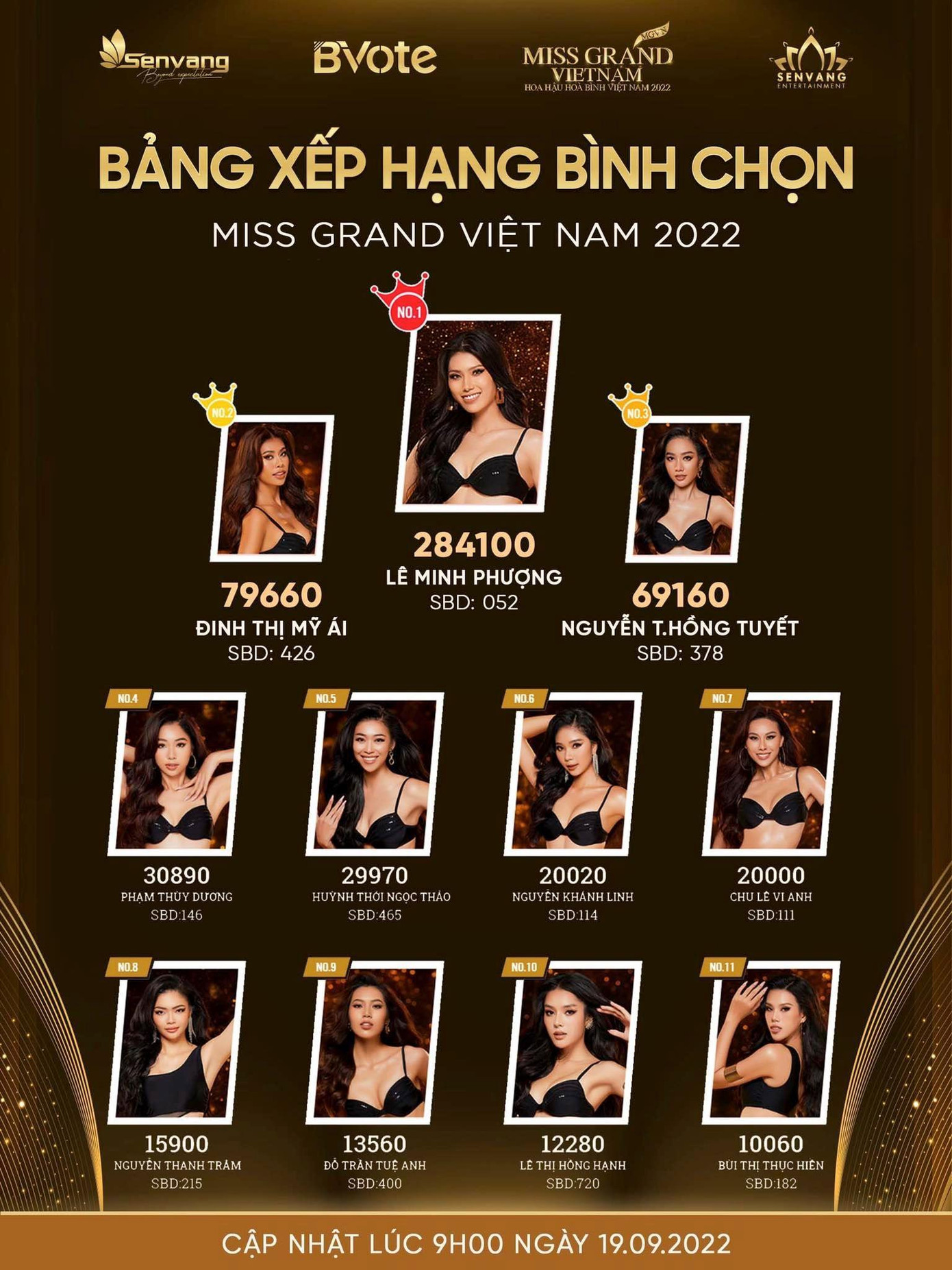 Sau nhiều ngày mở cổng bình chọn, các gương mặt nhận được nhiều sự yêu thích từ khán giả đã lộ diện. Với sự dẫn đầu của Top 3 Lê Minh Phượng (052), Đinh Thị Mỹ Ái (426), Nguyễn Thị Hồng Tuyết (378) khiến đường đua ngày càng trở nên gay cấn.