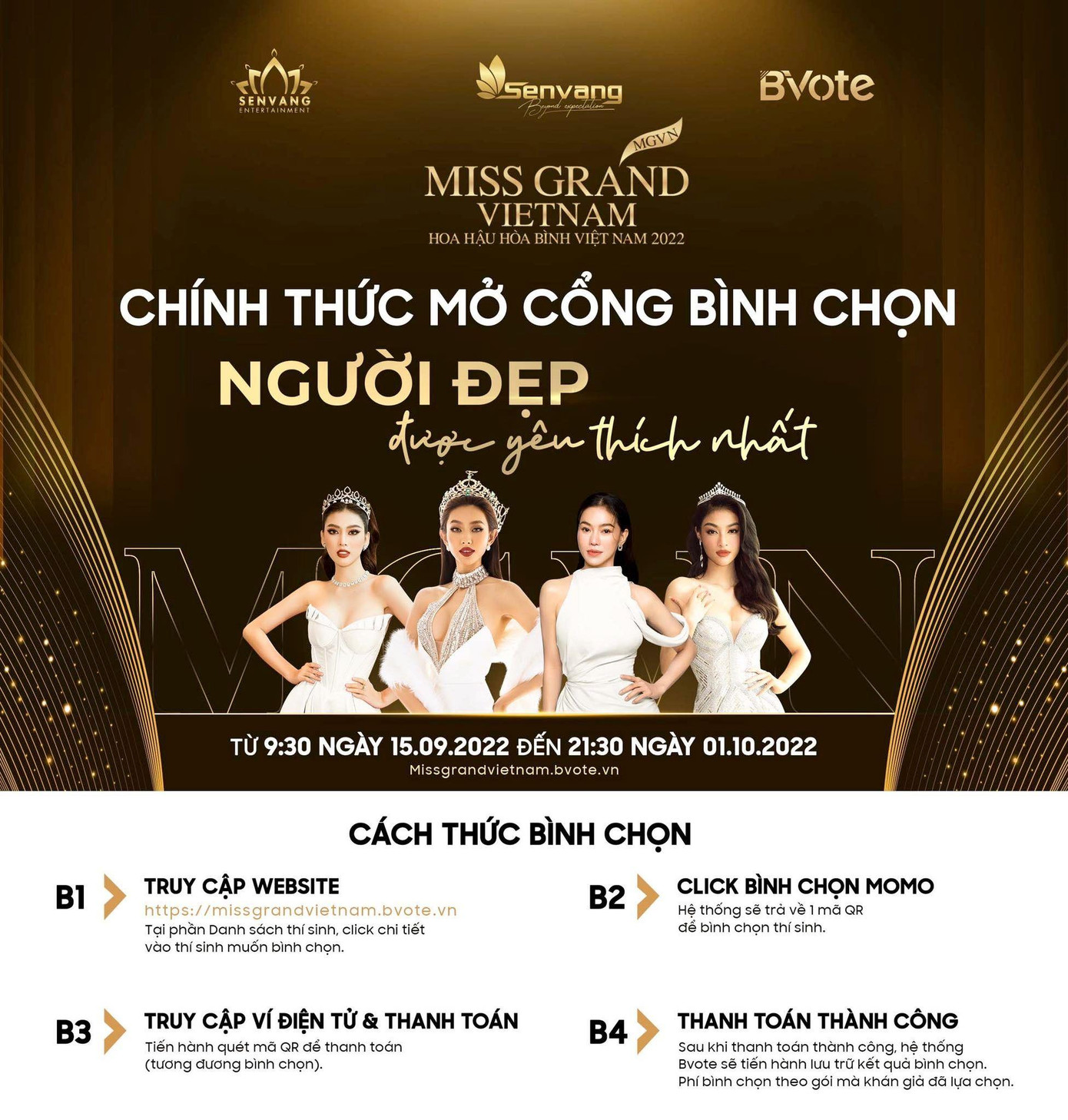 Phần thi Người đẹp được yêu thích nhất được ban tổ chức công bố trên nền tảng BVote - cổng bình chọn chính thức cuộc thi Miss Grand Vietnam 2022. Đây cũng là một trong những cơ hội để thí sinh tiến gần hơn với chiếc vương miện danh giá.