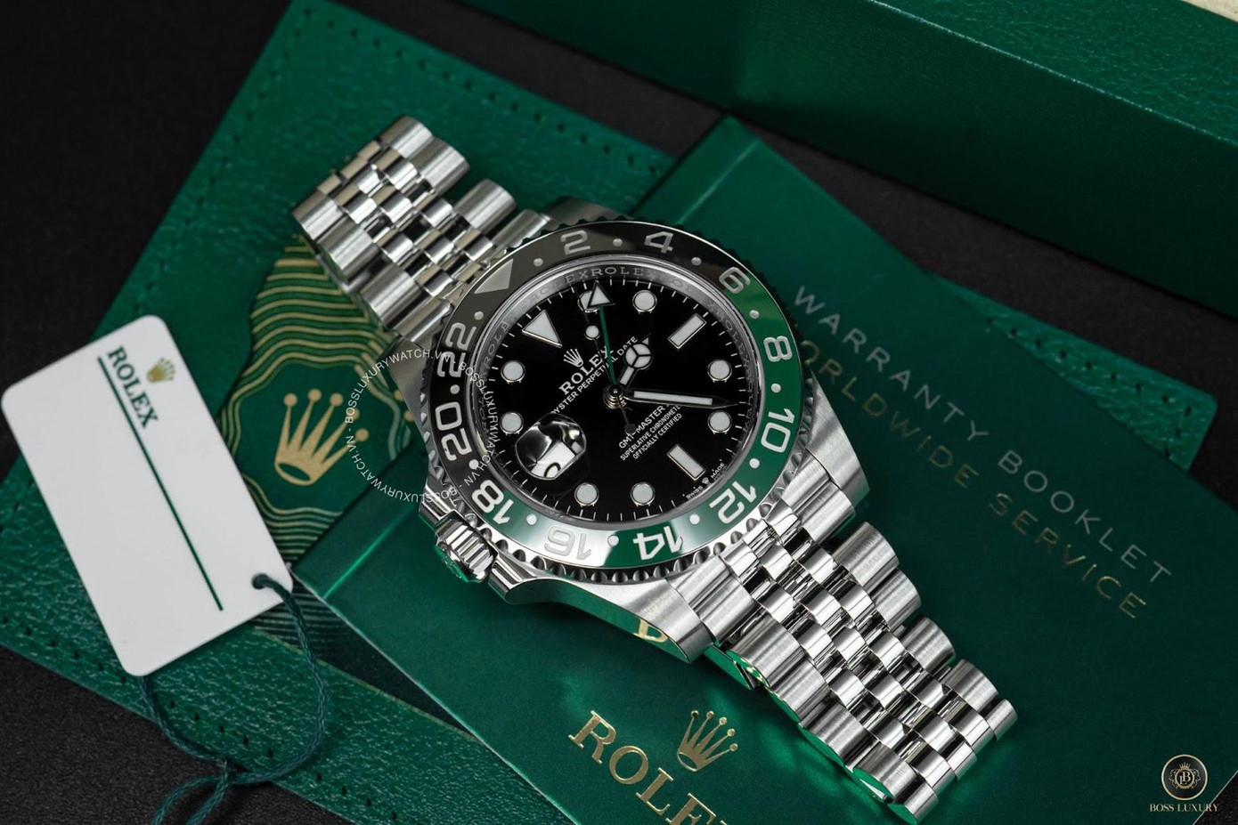 Mẫu đồng hồ đầu tiên có núm chỉnh giờ và ô cửa sổ ngày nằm bên trái, GMT-Master II Ref. 126720VTNR ra mắt dịp đầu năm 2022. Vẫn là mẫu đồng hồ hai tông màu, tuy nhiên màu xanh lá cây và đen trên vành bezel là một sự kết hợp hoàn toàn mới và chắc chắn sẽ tạo ra một sự thèm muốn trong giới sưu tầm. Điều ấn tượng, mặc dù được sinh ra để phù hợp với những khách hàng thuận tay trái, nhưng mẫu đồng hồ này hoàn hảo cho bất kỳ ai, dù thuận tay trái hay không. Vì vậy GMT-Master II Ref. 126720VTNR là một trong những nhân tố quan trọng cho thấy vì sao Rolex có thể làm rung chuyển ngành công nghiệp đồng hồ. Chỉ sau một thời gian ngắn ra mắt, phiên bản đã cập bến Boss Luxury phục vụ nhu cầu của người sở hữu.