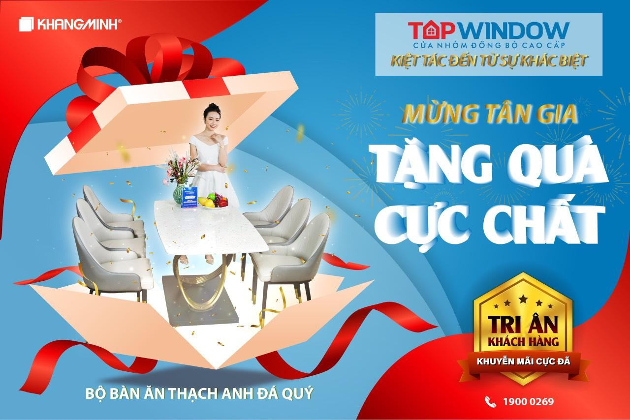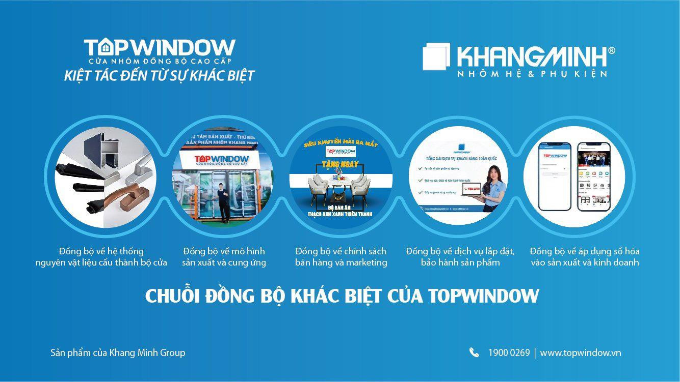 Cửa nhôm đồng bộ cao cấp TOPWINDOW - Sản phẩm của nhôm Khang Minh, thành viên thuộc Khang Minh Group, đơn vị có 12 năm kinh nghiệm sản xuất vật liệu xây dựng quy mô lớn tại Việt Nam với 2 nhà máy sản xuất tại Hà Nam, quy mô diện tích gần 10ha và chuỗi hệ thống Trung tâm Sản xuất – nhôm Khang Minh trên toàn quốc. Cửa nhôm đồng bộ cao cấp TOPWINDOW là bước đột phá mang đậm tinh thần Việt Nam và khát vọng của Khang Minh Group như: Đột phá về ứng dụng công nghệ vào sản xuất và bán hàng; Đột phá về tiêu chuẩn nguyên vật liệu cấu thành bộ cửa; Đột phá về mô hình sản xuất và cung ứng.
