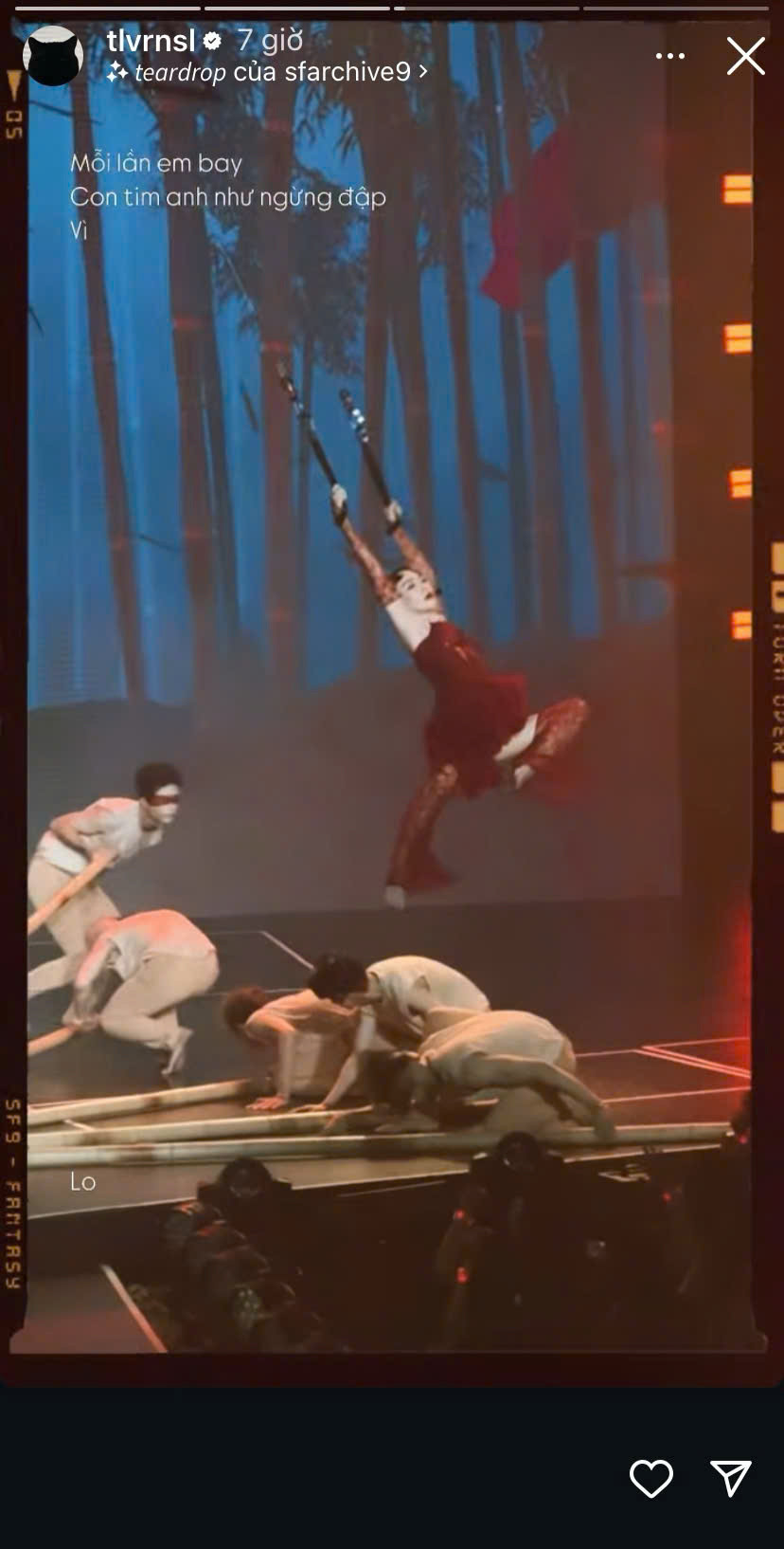 Không chỉ khán giả, Hoàng Touliver cũng thể hiện sự lo lắng khi nữ ca sĩ trình diễn ở độ cao 2 mét. Anh chia sẻ trên mạng xã hội: "Mỗi lần em bay. Con tim anh như ngừng đập. Vì... lo".