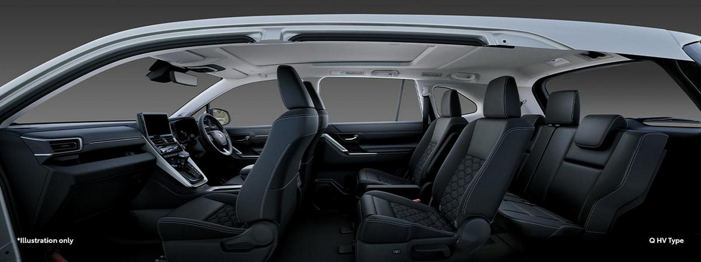 Ở khoang nội thất, Innova vẫn giữ cách bố trí ba hàng ghế đặc trưng, đủ không gian thoải mái cho 7 hành khách. Chiếc xe được trang bị một màn hình cảm ứng 9 inch hoặc 10 inch cho thông tin giải trí, màn hình 4,2 inch trong cụm đồng hồ và hai màn hình 10 inch phục vụ hành khách phía sau. Các phiên bản cao cấp hơn còn có ghế ngồi bọc da.