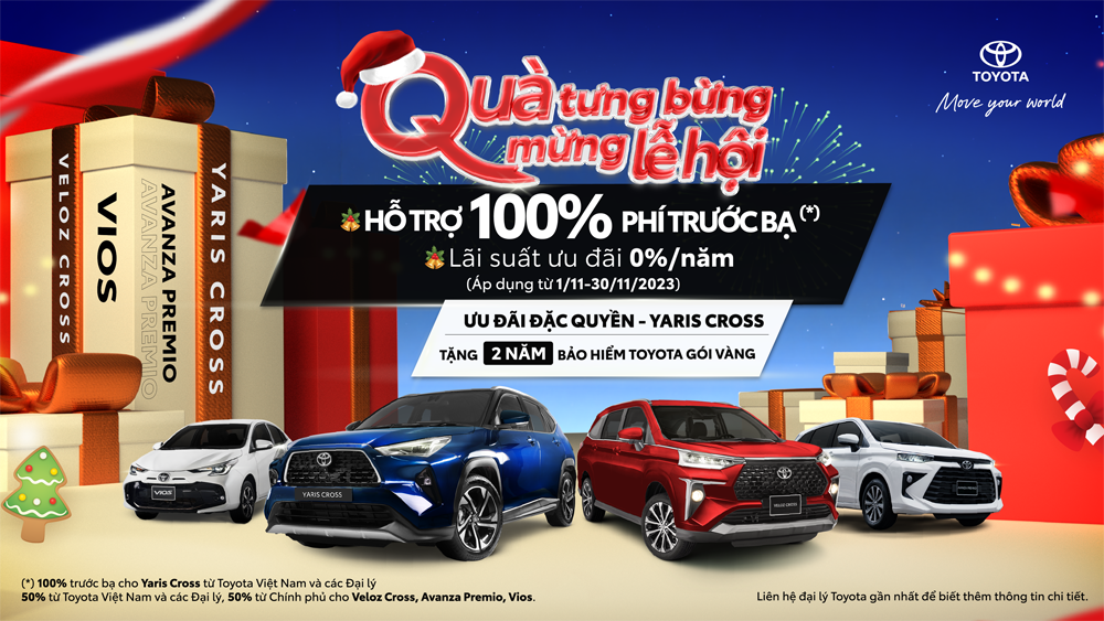 Theo đó, từ ngày 1/11 - 30/11/2023, hệ thống Đại lý toàn quốc của Toyota Việt Nam đồng loạt triển khai chương trình ưu đãi lớn nhất năm dành cho tất cả khách hàng mua các mẫu xe kể trên và hoàn tất thủ tục thanh toán 100% trong thời gian diễn ra chương trình và đại lý đã xuất hóa đơn giá trị gia tăng sẽ nhận được ưu đãi khi mua xe: