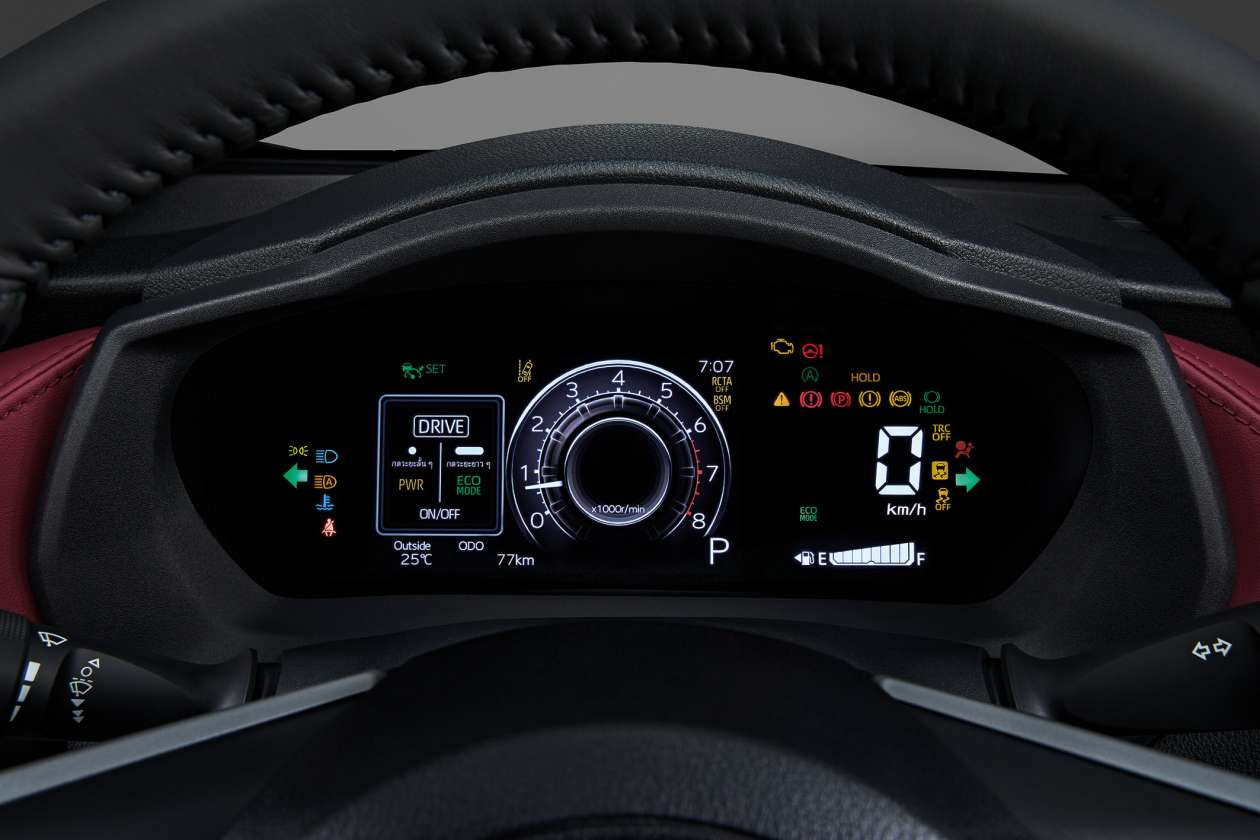 Cùng với đó, nó sử dụng bánh xe hợp kim 17 inch, lẫy chuyển số, camera 360 độ, cụm công cụ kỹ thuật số 7 inch. Cũng giống như phiên bản tại Thái Lan, Vios đời mới trang bị nền tảng mới từ Daihatsu.