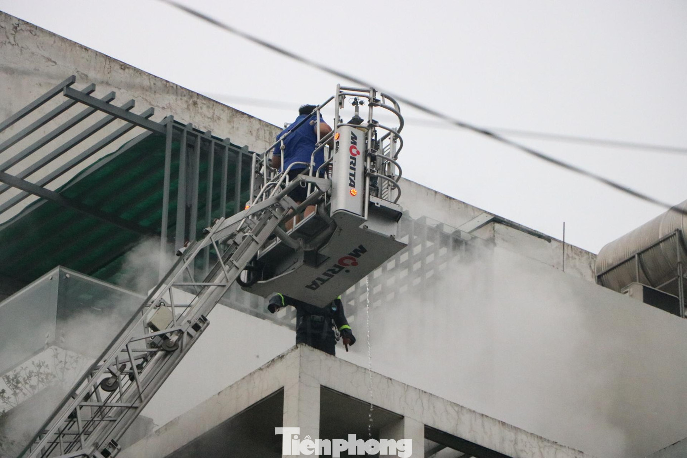 Do hiện trường vụ cháy xảy ra ở tầng trên cùng của căn nhà nên lực lượng làm nhiệm vụ phải dùng xe thang để triển khai công tác cứu hộ và dập lửa.