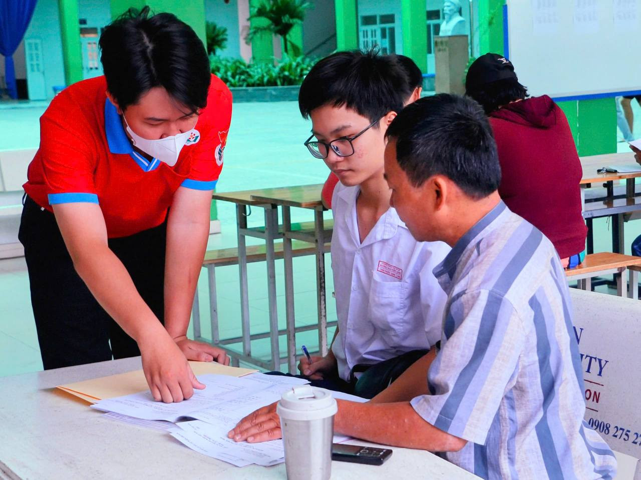 Phát huy vai trò xung kích, tình nguyện, các chiến sĩ Hoa phượng đỏ đã tận tình hỗ trợ, hướng dẫn phụ huynh và học sinh để hoàn tất các thủ tục hồ sơ nhanh chóng, chính xác, tiết kiệm tối đa thời gian.