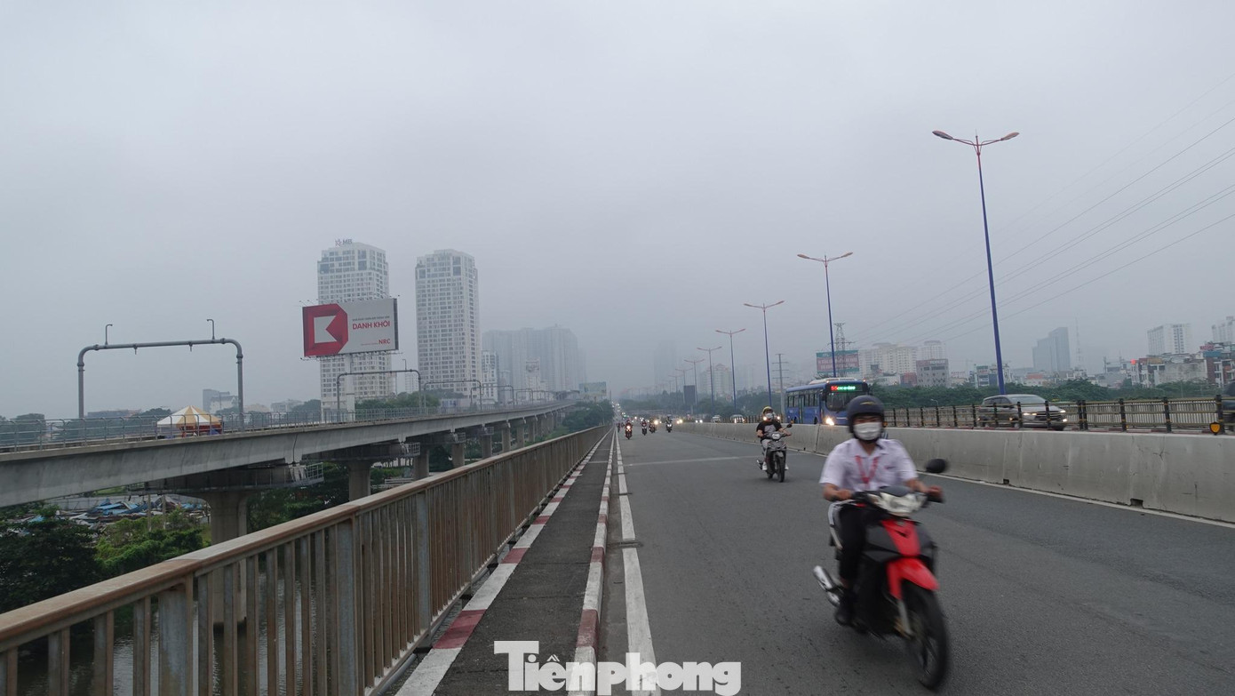 | Theo ghi nhận của Tiền Phong sáng 24/10, thời tiết mát mẻ kèm theo sương mù bao phủ dày đặc trên nhiều tuyến đường tại TPHCM khiến tầm nhìn xa giảm. |