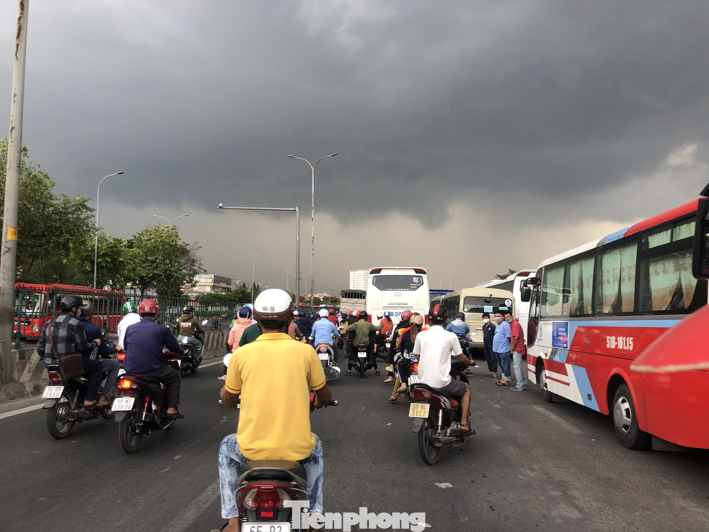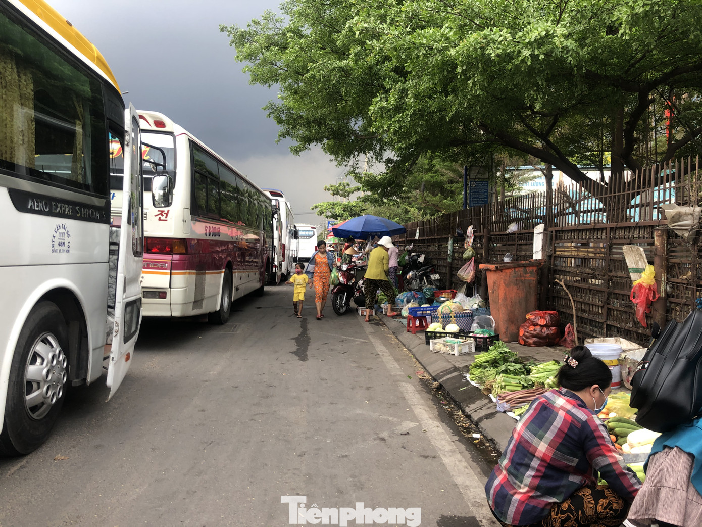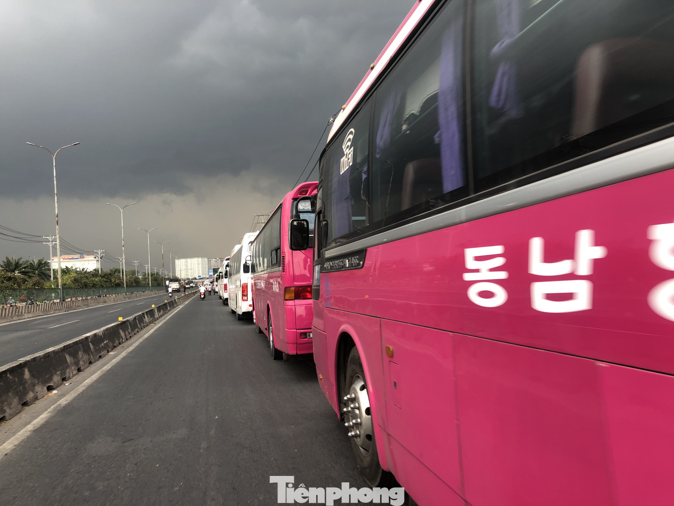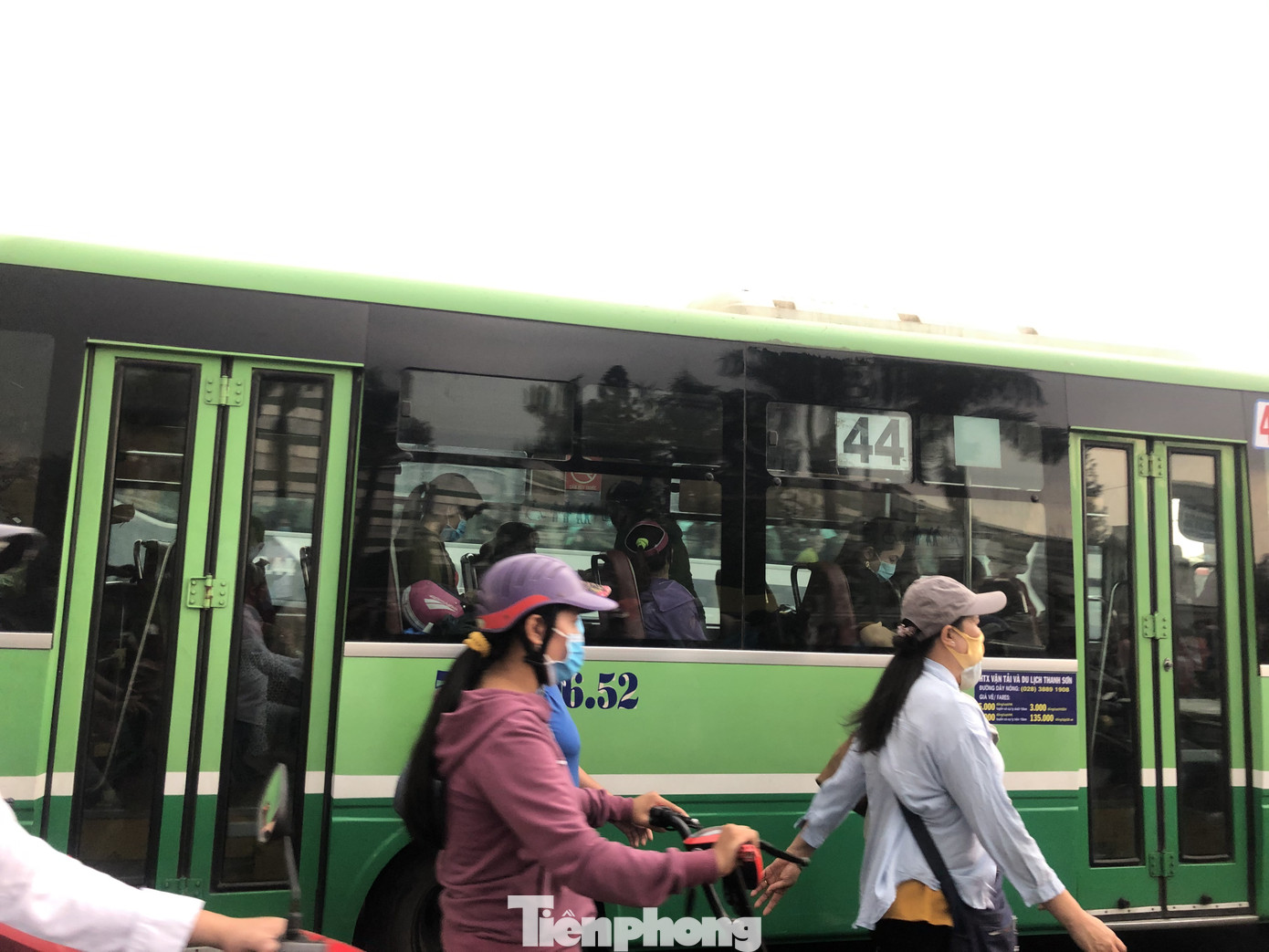 Theo các công nhân, do mỗi xe phải thực hiện giãn cách số người trên xe nên công ty tăng cường xe khách và xe bus trong những ngày này, khiến dòng xe càng thêm dài