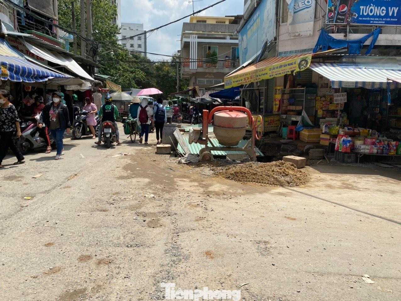 | Chị Nguyễn Thị Lự, buôn bán tại khu chợ đường Nguyễn Văn Công cho biết: "Sạp hàng buôn bán của tôi nằm sát công trình của dự án, khi các công nhân đào bới lấp đất nước tràn vào các hố ga phụ trong sạp gây mùi hôi khó chịu". |