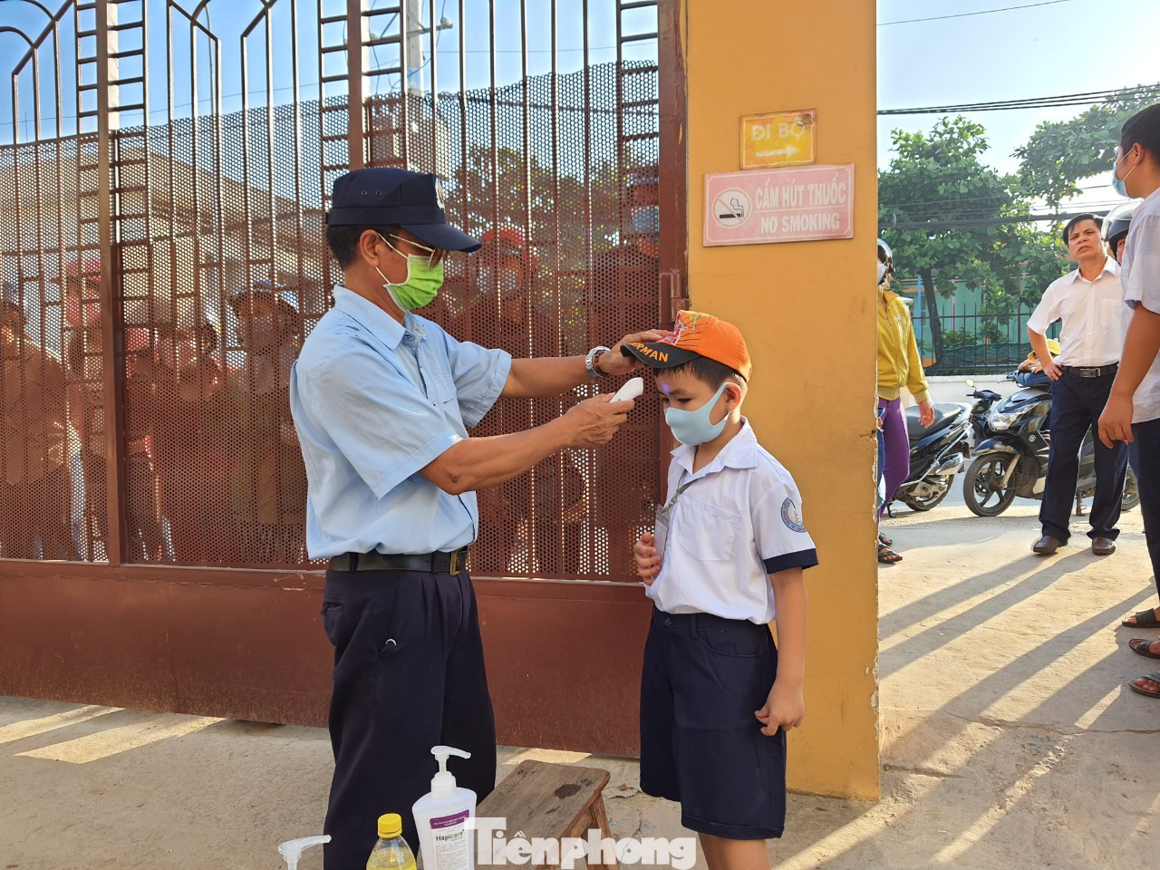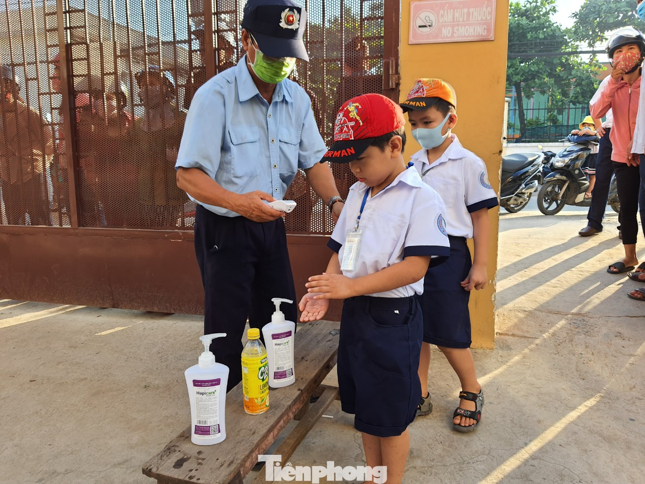 Ghi nhận tại Trường Tiểu học Phạm Văn Chiêu, quận 12, TPHCM, ngay từ sáng sớm, phụ huynh đã đưa học sinh đến trường để dự lễ khai giảng. Các phụ huynh được yêu cầu giao con ở cổng trường, học sinh được đo thân nhiệt, rửa tay sát khuẩn trước khi vào trường.