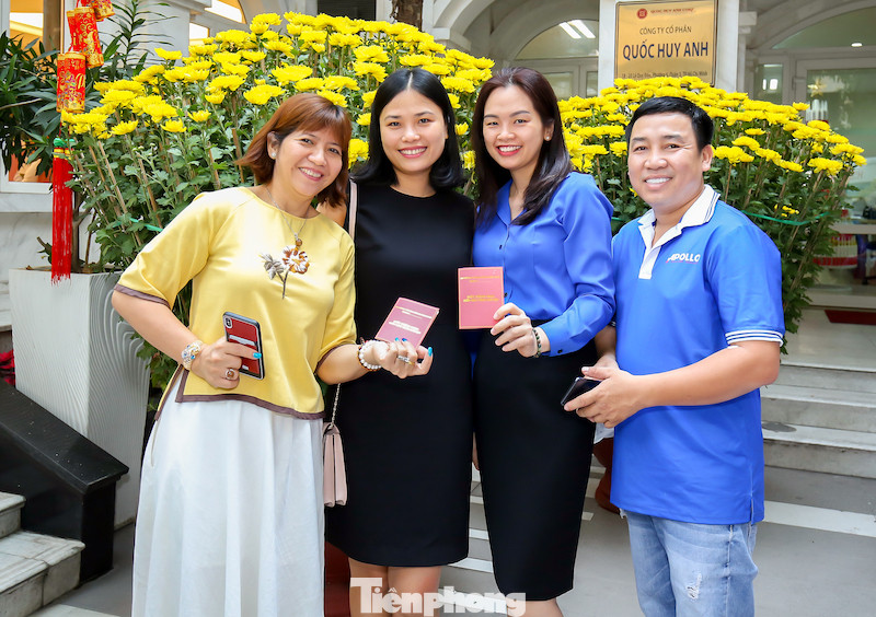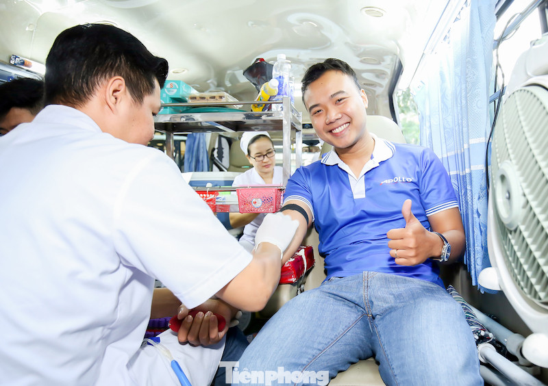 Ngay từ buổi sáng, gần 100 nhân viên, khách hàng của Công ty Cổ phần Quốc Huy Anh đã tập trung để chuẩn bị cho công tác hiến máu.