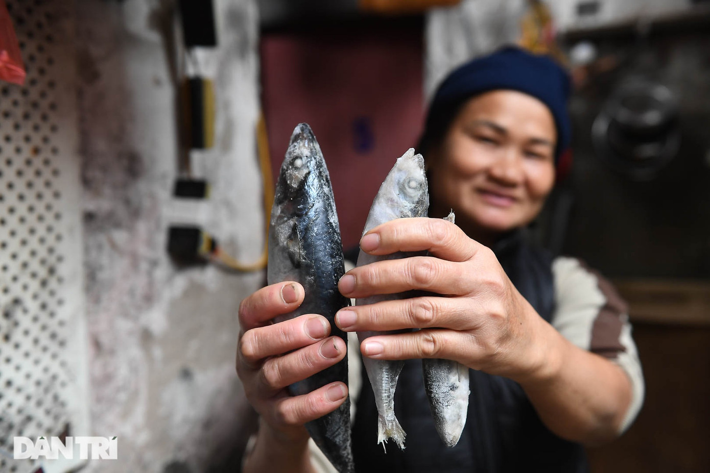 Bà Hòa quê ở Hưng Yên, lên Hà Nội làm nghề buôn cá đã hơn 20 năm nay. 2h mỗi ngày, bà ra chợ đầu mối nhập cá biển đông lạnh sau đó đưa về quầy phân loại, làm sạch, chia vào từng túi 2, 3 hay 5kg để cung cấp cho các quán cơm.