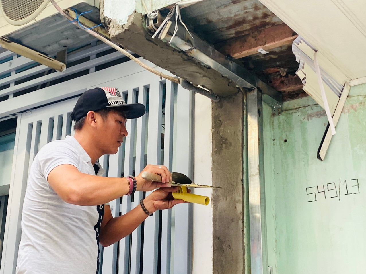 | Người dân sửa chữa lại nhà cửa sau khi hiến đất mở hẻm |