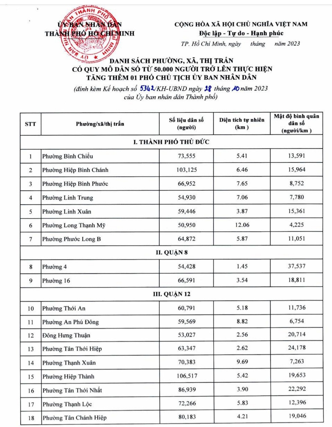 Chủ tịch UBND TPHCM Phan Văn Mãi vừa ký ban hành kế hoạch thực hiện tăng thêm 1 Phó Chủ tịch HĐND, Phó Chủ tịch UBND TP. Thủ Đức; Phó Chủ tịch UBND 3 huyện và Phó Chủ tịch UBND đối với phường, xã, thị trấn có quy mô dân số từ 50.000 người trở lên.